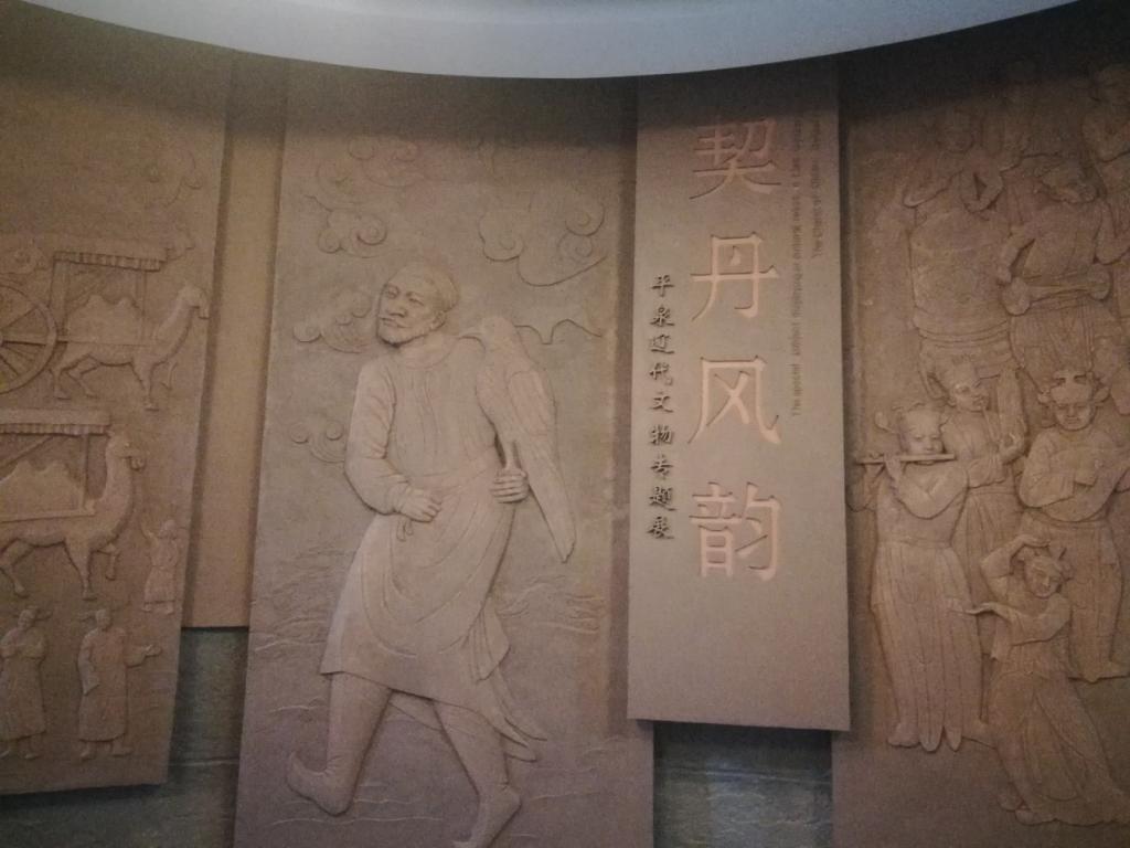 第三层为契丹文化博物馆,据契丹始祖传说,“相传有神人乘白马,自马盂山浮土河而东,有天女驾青牛车由平地松林泛潢河而下。至木叶山二水合流相遇为配偶,生八子。其后族属渐盛,分为八部”。马盂山就是平泉柳溪乡光秃山,土河就是发源于马盂山的老哈河,因此在平泉市有丰富的契丹文化遗产。作为辽代“五京”之一,平泉也曾孕育了辉煌灿烂的辽代文化。通过参观,小分队成员们收益颇丰,对契丹文化、政治、经济有了初步的了解,另外展馆展出的艺术瑰宝、文化古物也使我们叹为观止。
