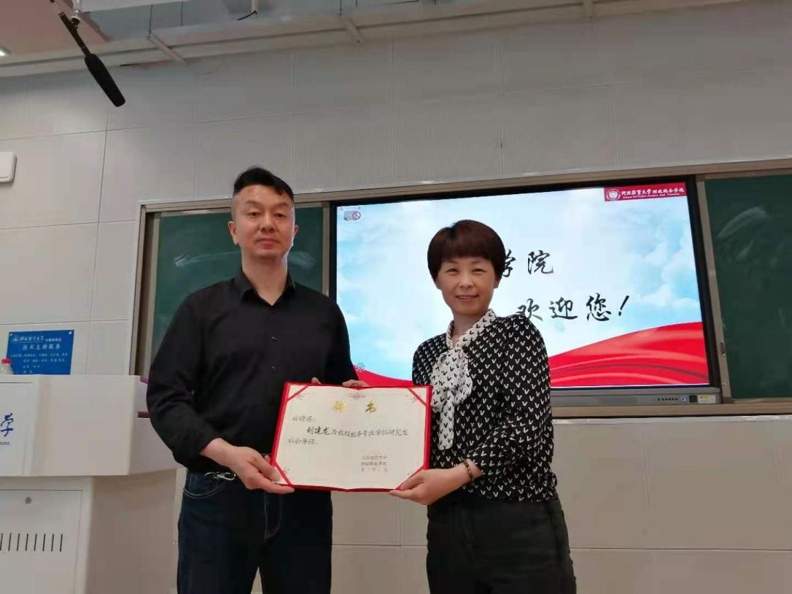 仇晓洁首先代表学院聘请刘建龙总经理担任本学院税务专硕社会导师,并颁发聘请证书。刘建龙以金税三期概念为切入点,介绍了当前国家财税系统引用大数据、云计算将税收职能由过去的事后监管转变为现在的经营过程监督;就税收方面提出“未来的趋势是中小企业进入合规经营的新时代”、“小企业用大政策,大企业用小政策”两点自己的见解,并引用大量现实案例深入地阐述了未来小微企业的税收发展方向。刘建龙还介绍了当代小微企业面临用人成本与税收成本双重提升的痛点及风险点,并有机联系到企业税收筹划的思路与社保入税风险化解的途径。