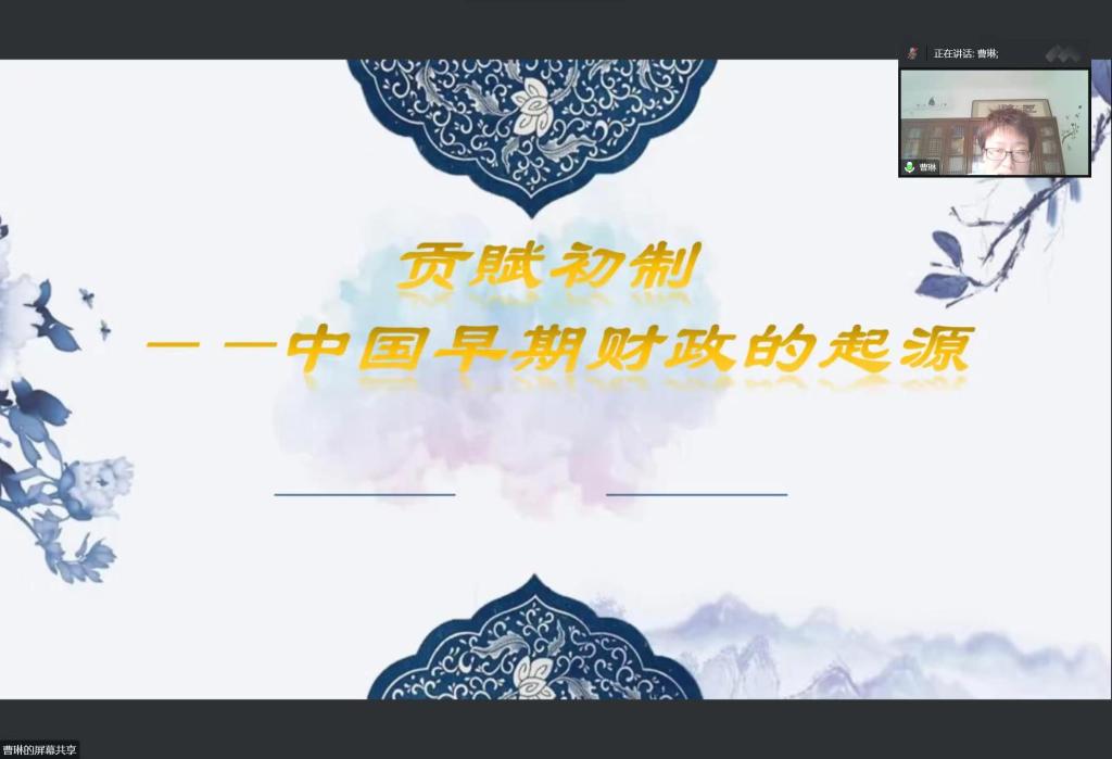 利用腾讯会议举办了以“中国财税史课程思政建设思路”为主题的沙龙活动。本次沙龙活动由温立洲副院长主持,曹琳老师主讲,郝江华书记、王晓洁院长以及财税学院全体教师以及其他学院部分教师参加了此次活动。