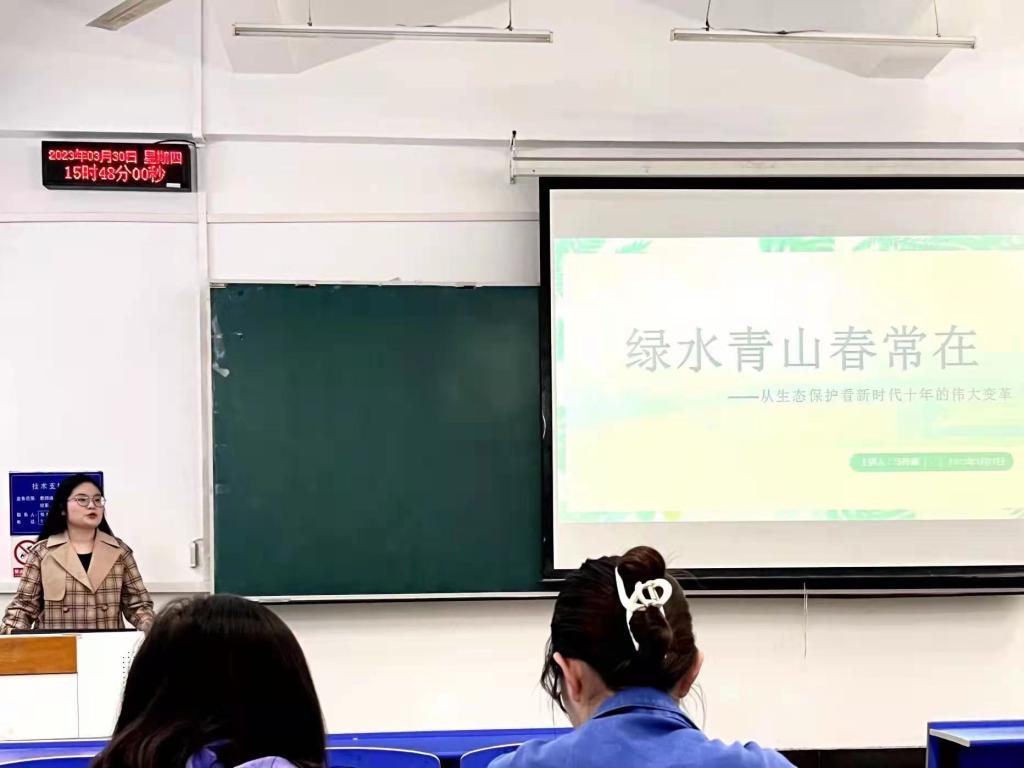 “微党课•我来讲”之党的二十大精神主题党课第二讲——“绿水青山春常在”在北三教B102开讲。此次微党课由财政专业学生党支部党员马梓涵主讲,支部全体党员和部分积极分子参加。