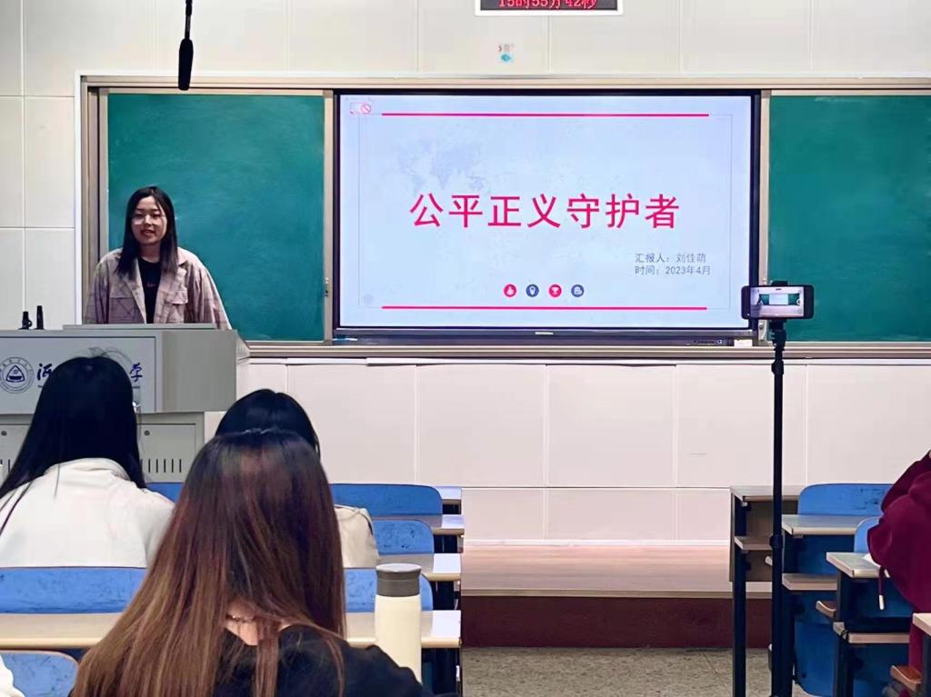 “时代楷模”宣讲会本学期第三讲——“聚焦公平正义守护者”在北三教A302开讲。此次宣讲会由财政专业学生党支部刘佳萌主讲,支部全体积极分子参加。