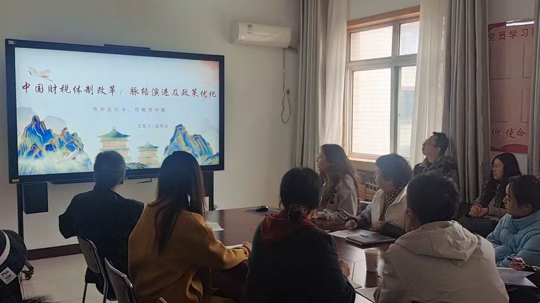 在学院210会议室举办了以“中国财税体制改革:脉络演进及政策优化”为主题的教学沙龙活动。本次沙龙活动由温立洲副院长主持,赵明洁老师主讲,财税学院全体教师参加了此次活动。