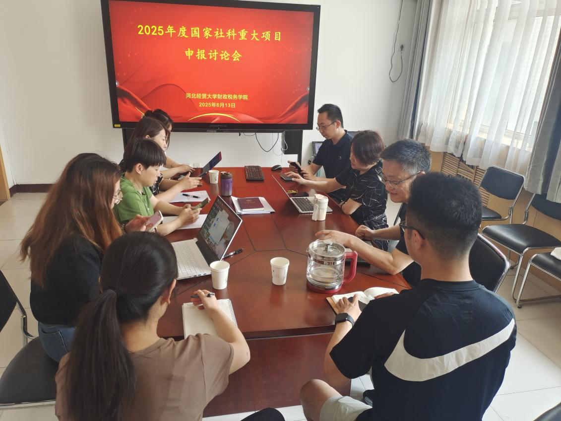 召开了2025年度国家社科重大项目申报讨论会。会议由学院院长王晓洁主持,特邀专家河北省财政厅研究员王相启、副院长仇晓洁以及学院多位青年博士教师共同参加了研讨。