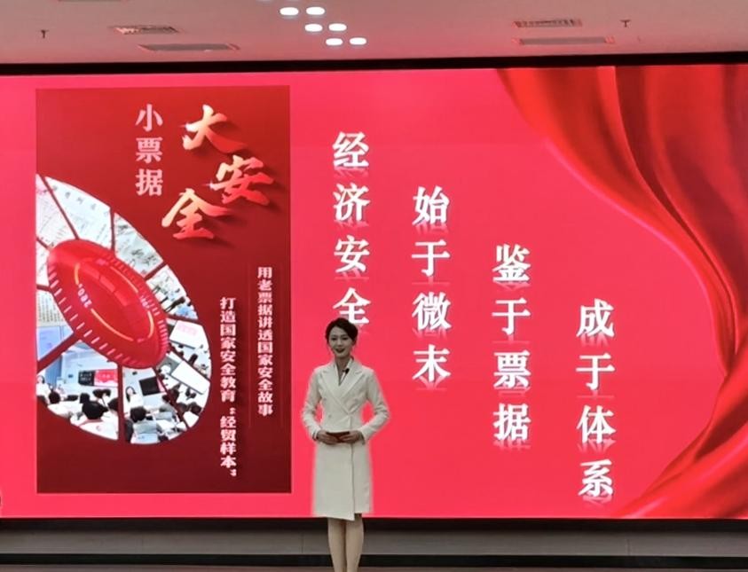 宣讲团以"小票据 大安全:票据作镜观国家安全 党建引领育时代新人"为题,进行了7分钟的现场展示。宣讲团创新性地将财税专业知识与国家安全教育深度融合,通过票据这一独特视角,生动诠释了经济安全在国家安全体系中的重要地位,展现了新时代财税学子维护国家经济安全的责任担当。
