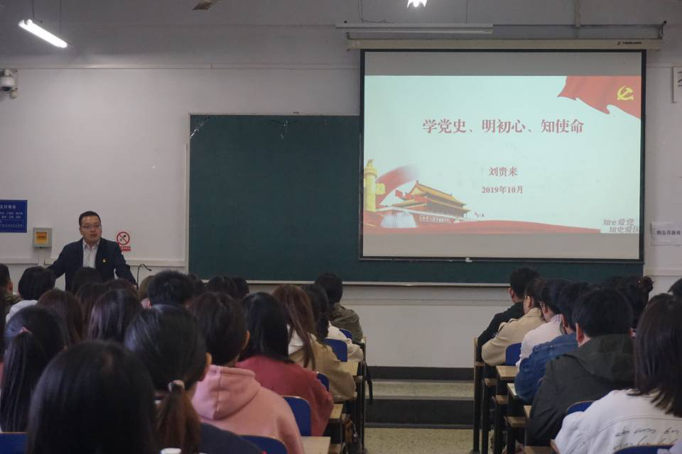 党委副书记刘贵来以“学党史,明初心,知使命”为主题,为全体学生党员,预备党员,入党积极分子讲授党课。