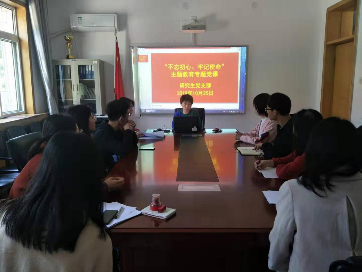 研究生党支部在第三办公楼105会议室开展了“不忘初心,牢记使命”主题教育。专题党课由仇晓洁副院长主持,成人直播