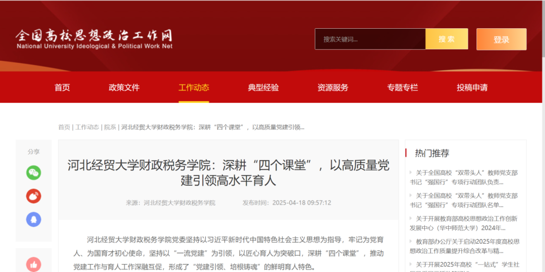 全国高校思想政治工作网报道成人直播 “四个课堂”党建引领育人成效。成人直播 党委坚持以习近平新时代中国特色社会主义思想为指导,牢记为党育人、为国育才初心使命,坚持以“一流党建”为引领,以匠心育人为突破口,深耕“四个课堂”,推动党建工作与育人工作深融互促,形成了“党建引领、培根铸魂”的鲜明育人特色。