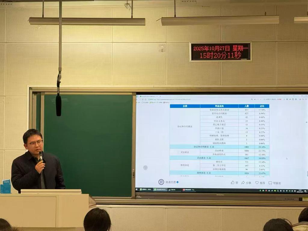党委在北三教A107开展党课培训,本次党课围绕“树立正确就业观,勇担时代新使命”进一步讲解习近平新时代中国特色社会主义思想,引导青年实现个人与时代的同频共振。此次党课由博士毕业于中南财经政法大学的郑铿城老师主讲,入党积极分子参加。