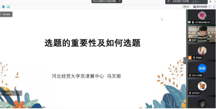 邀请校京津冀一体化发展协同创新中心冯文丽教授于线上作了题为“选题的重要性及如何选题”专题讲座。讲座由成人直播