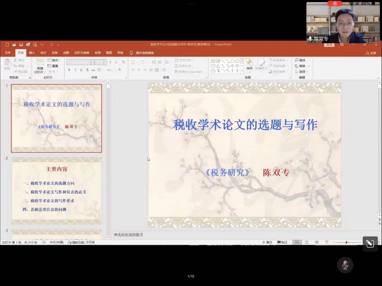 邀请,于线上作了题为“税收学术论文的选题与写作”的学术讲座。讲座由财税学院副院长仇晓洁主持,学院200余名师生参会。