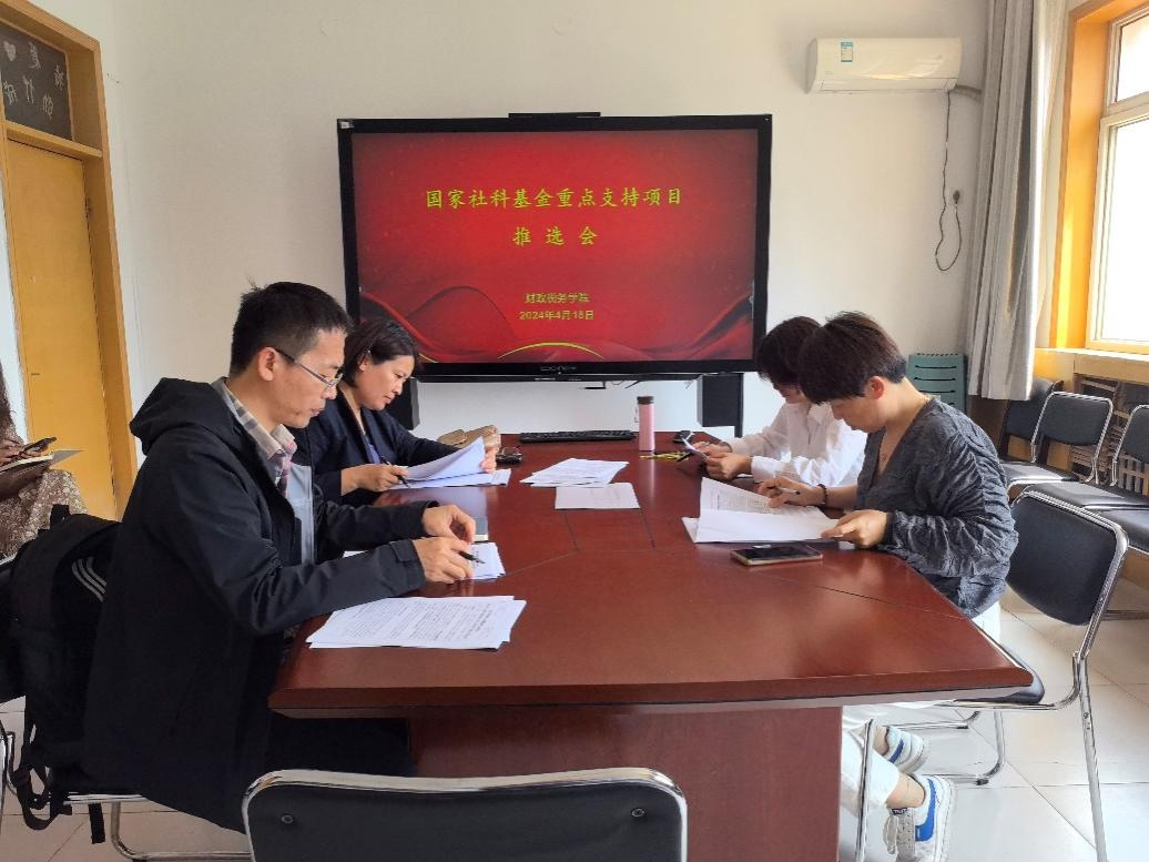 举办国家社科基金支持项目推选会,会议由副院长仇晓洁主持,院长王晓洁及国家级科研项目申报小组成员参加。