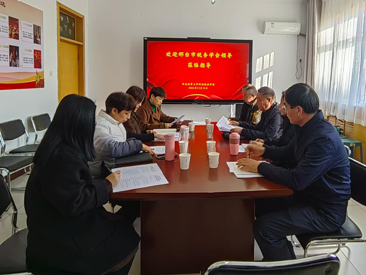 王晓洁在致辞中对邢台市税务学会一行的到来表示热烈欢迎,并向与会者介绍了学院的学科发展状况及人才培养规划,表达了与邢台市税务学会合作的殷切期望。梅九润对学院取得的成就给予了高度评价。