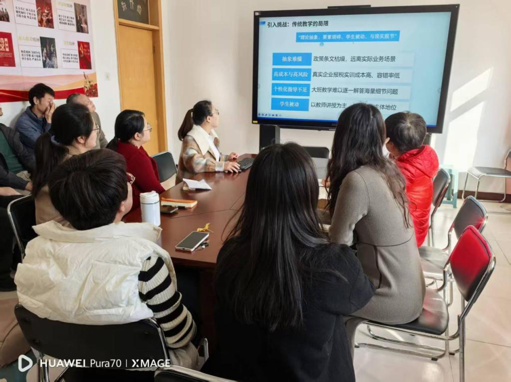 在学院210会议室举办了以“智慧教学新范式:“5E+虚拟仿真+DeepSeek”三元融合模式探析”为主题的教学沙龙活动。本次活动由温立洲副院长主持,王静敏老师主讲,财税学院多位教师参与交流,共同探讨教育信息化背景下智慧教学新范式。