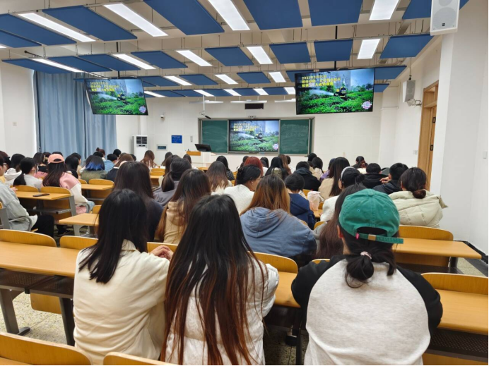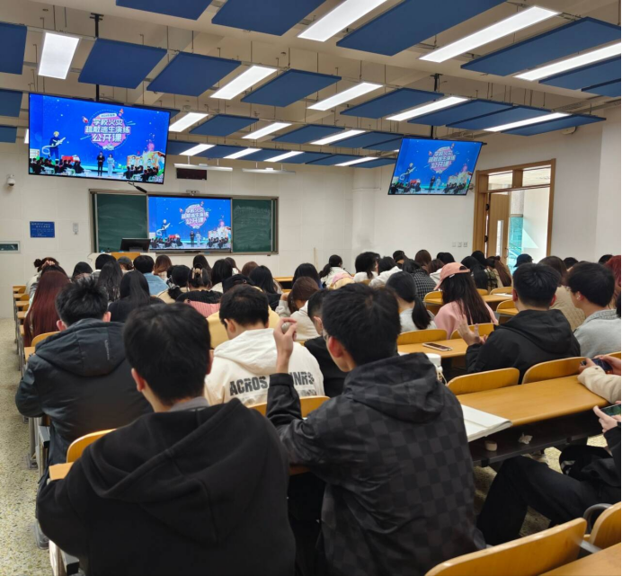 在B107组织观看2024年春季校园火灾疏散逃生演练公开课活动,2021级财政学专业和税收学专业的学生参加。