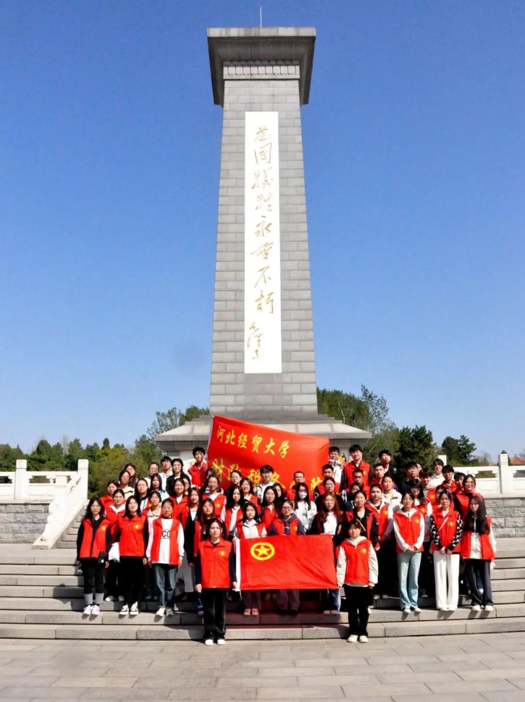 2023级资产评估专业全体学生由辅导员翟勤老师带队,前往华北烈士陵园开展祭扫活动,致敬英雄烈士。
