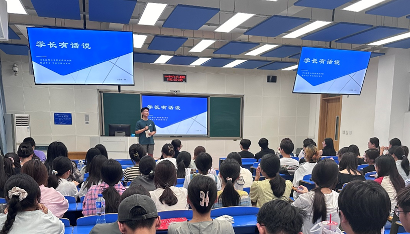 在B教103举办“学长有话说”2024届优秀毕业生经验分享会,2023级税收专业全体同学参加。分享会由学院职业愿景工作室负责人郑颖教授主持。