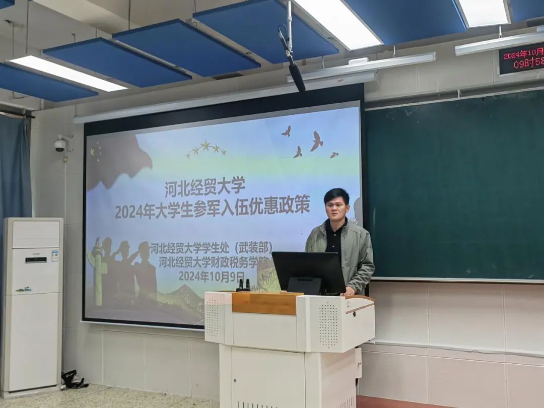 陈运涛从基本常识、报名参军基本流程、大学生参军优待政策、我校大学生参军优待政策四个板块出发为学生们详细讲解了2024年大学生参军入伍优惠政策,使学生们对参军入伍的流程与政策有了更明晰的认知,为有入伍意向的同学指明了方向,为更多学生未来发展提供了多元选择。