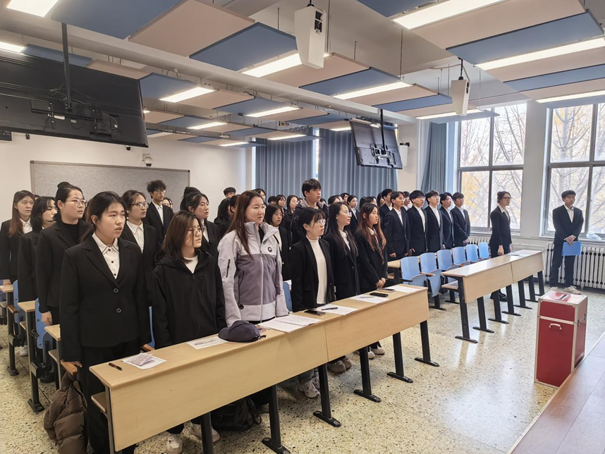 提案工作报告四项议程,会议开始前,全体师生奏唱国歌。