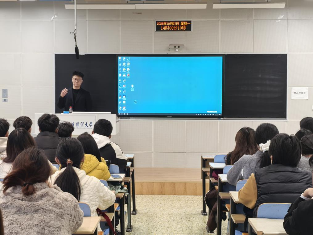 边少挺主要从大学学习、升学规划及就业规划三个方面开展分享。在大学学习方面,边少挺强调“在什么阶段干什么事”,建议重视证书考取、避免挂科,有意识地提前准备毕业论文,并注重维护和谐的师生关系与校友情谊;在升学规划方面,他提醒应尽早确定考研目标,合理分配时间,理性面对税务师、注册会计师考试等多种选择;在就业方面,他介绍了创业、考公、企业就业等多条路径,详细分析了银行系统构成、就业前景和校招流程,鼓励大家提升判断力,理性看待行业评价,做出正确就业决策。